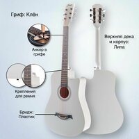 Купить Гитара акустическая 38″ Белая Глянцевая (Набор начинающего гитариста, Jordani JD3810 WH) с доставкой по всей России.