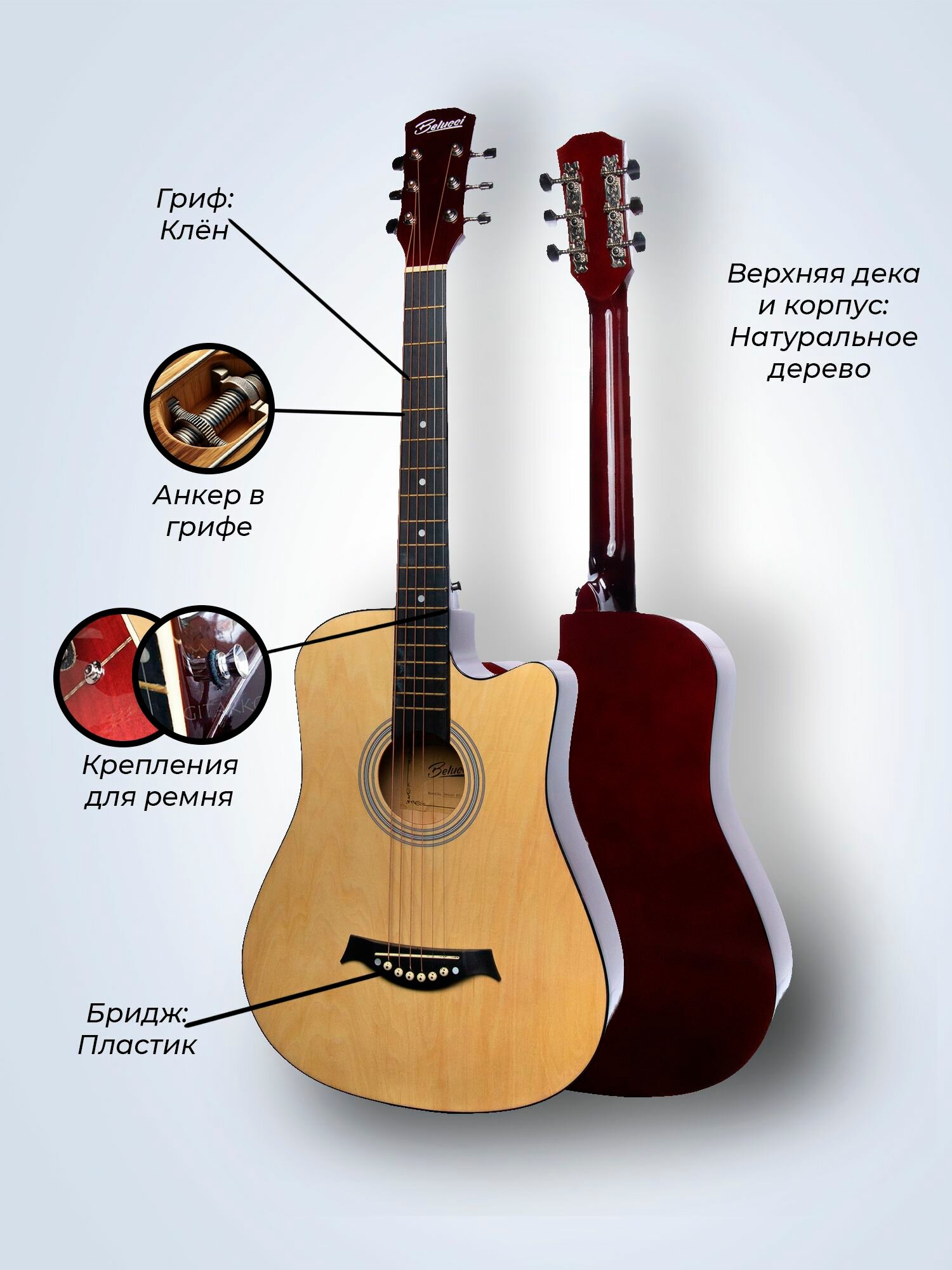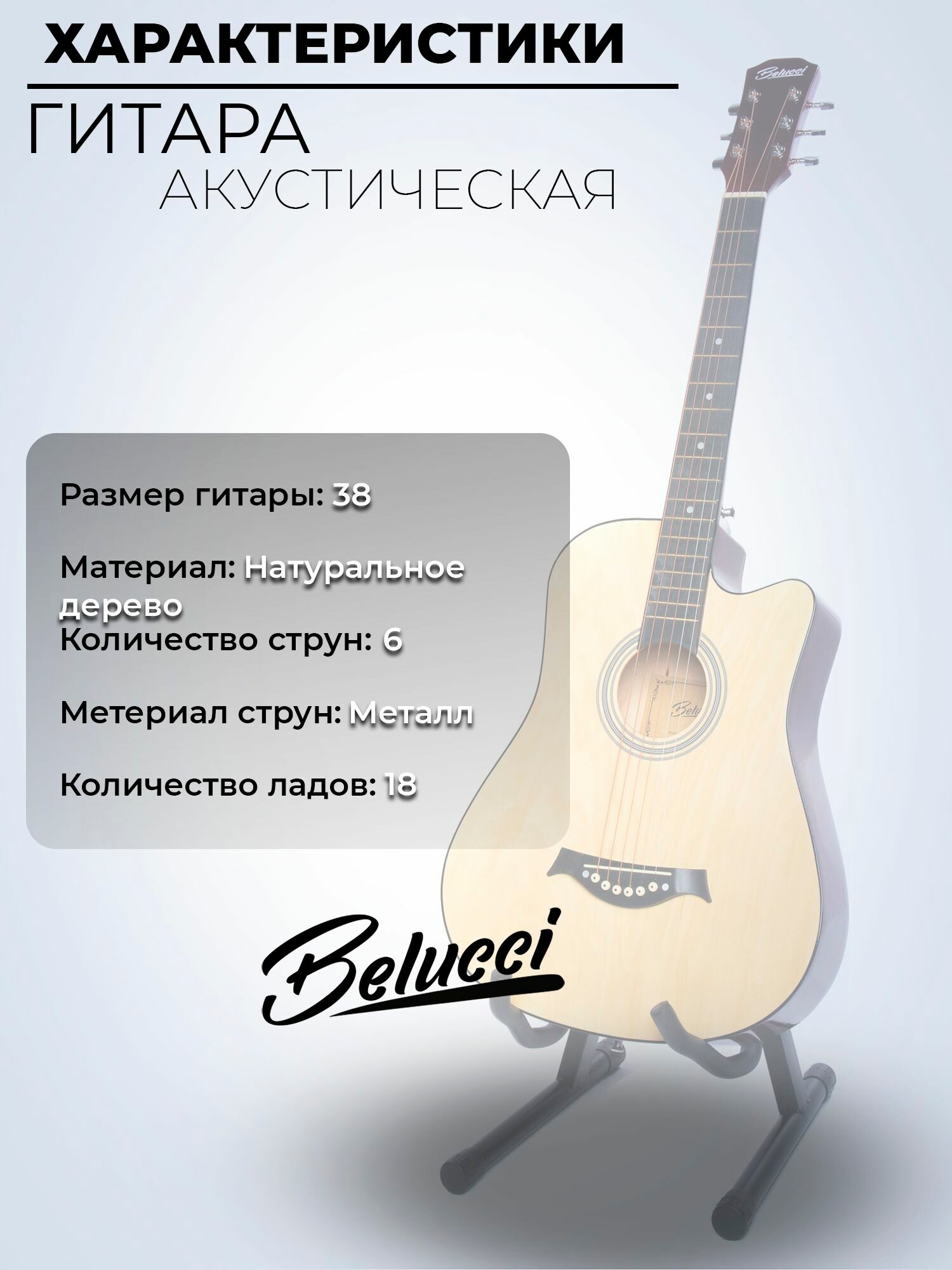 Гитара акустическая 38″ Бежевая Belucci BC3810 N (Набор начинающего гитариста): сравнение цен, характеристики, фото, актуальное наличие и цены.