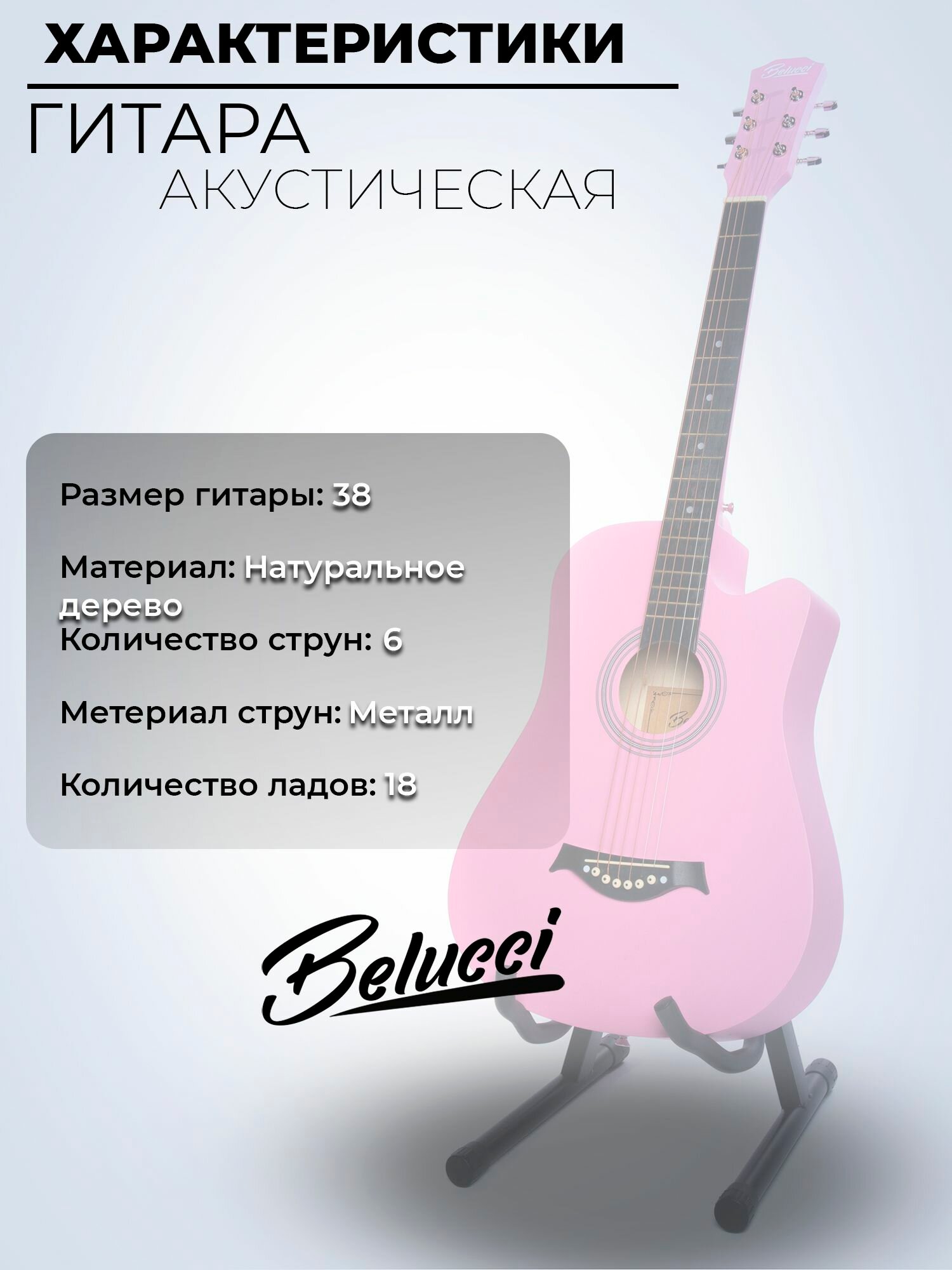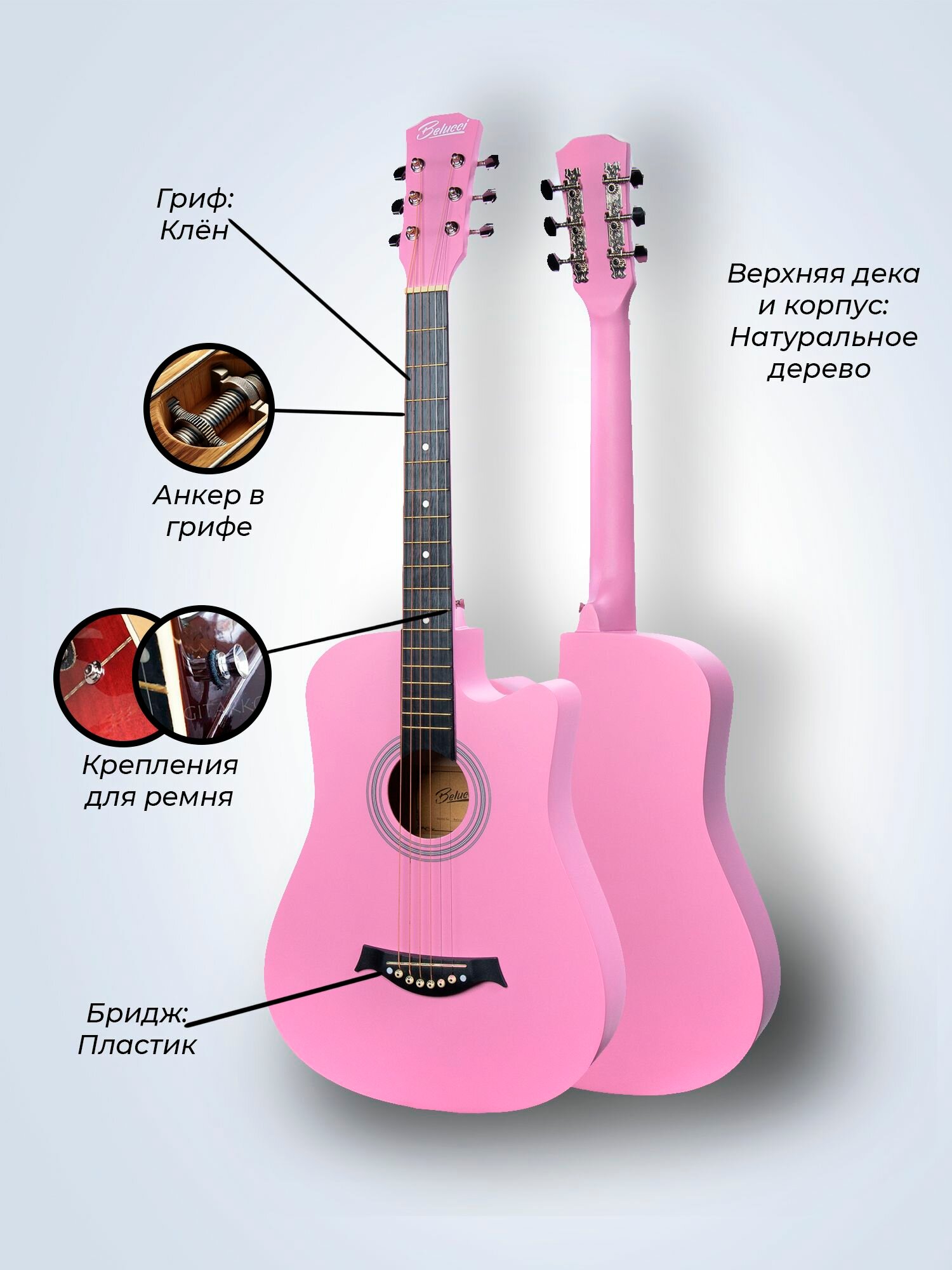 Гитара акустическая 38″ Розовая (Инструмент начинающего гитариста, Belucci BC3820 PI): сравнение цен, характеристики, фото, актуальное наличие и цены.