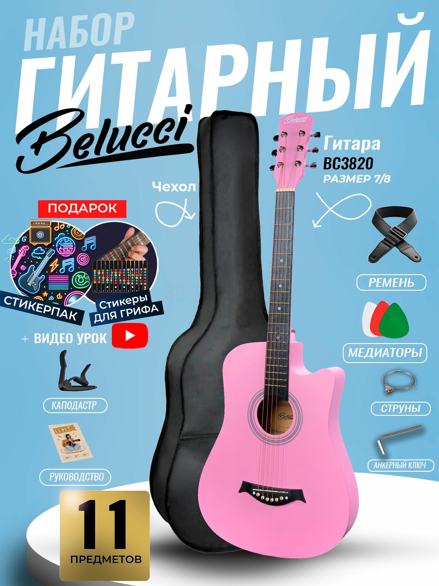 Гитара акустическая 38″ Розовая (Инструмент начинающего гитариста, Belucci BC3820 PI): сравнение цен, характеристики, фото, актуальное наличие и цены.