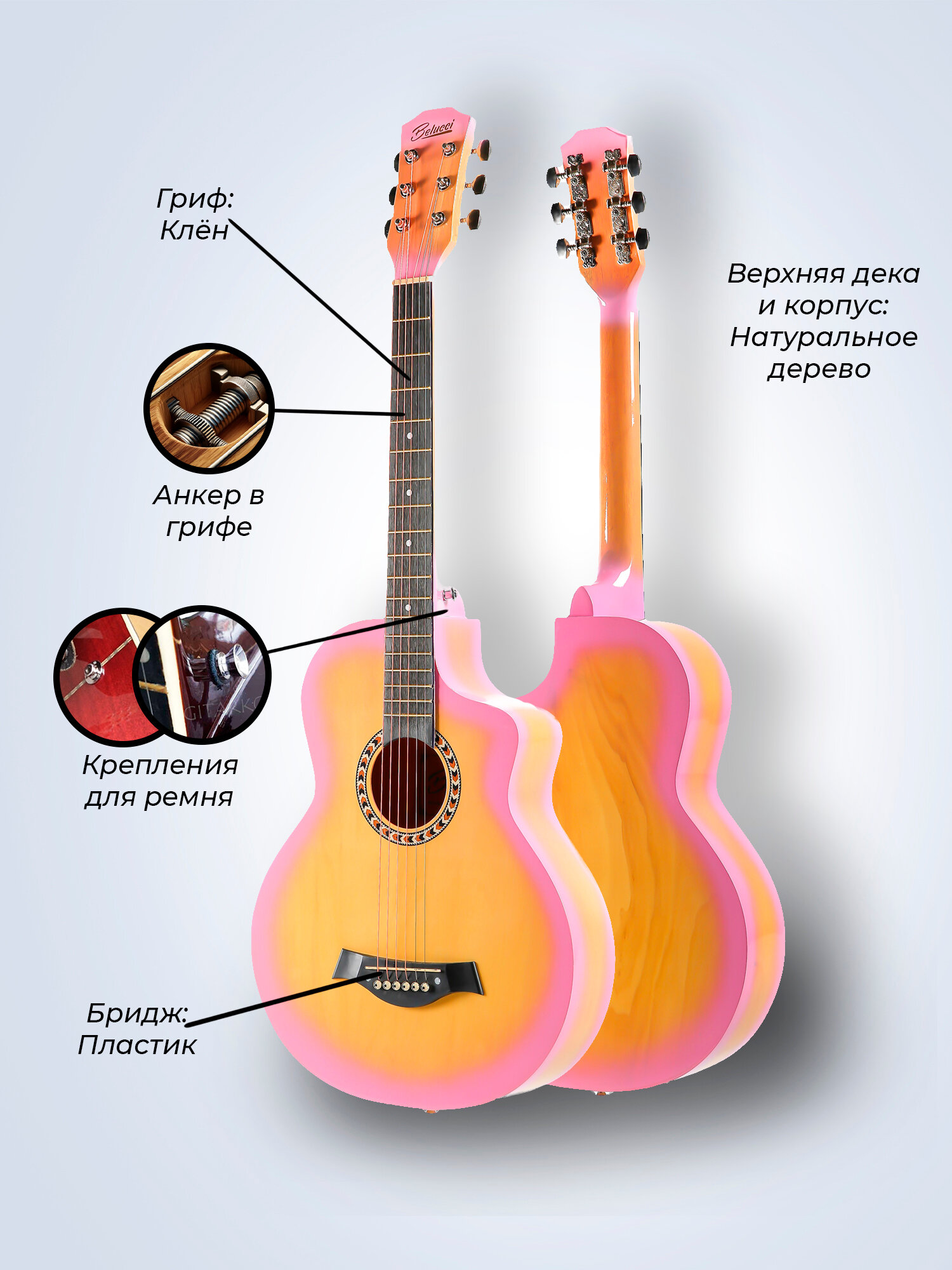 Купить Гитара акустическая 38″ Светло-оранжевая (Инструмент начинающего музыканта, Belucci BCL3825 YG) с доставкой по всей России.