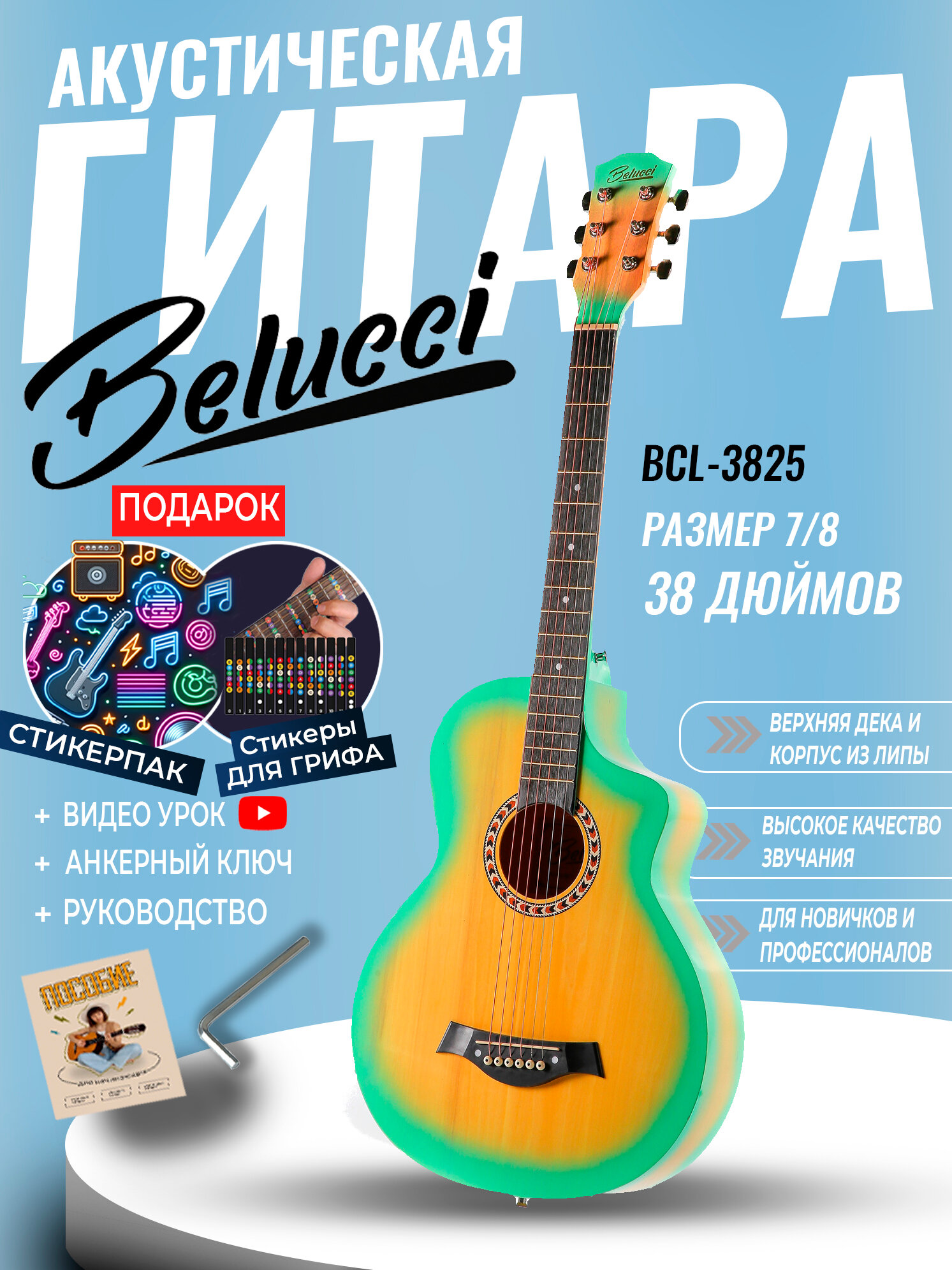 Гитара акустическая 38″ Светло-зелёная (Инструмент начинающего музыканта, Belucci BCL3825 WV: сравнение цен, характеристики, фото, актуальное наличие и цены.