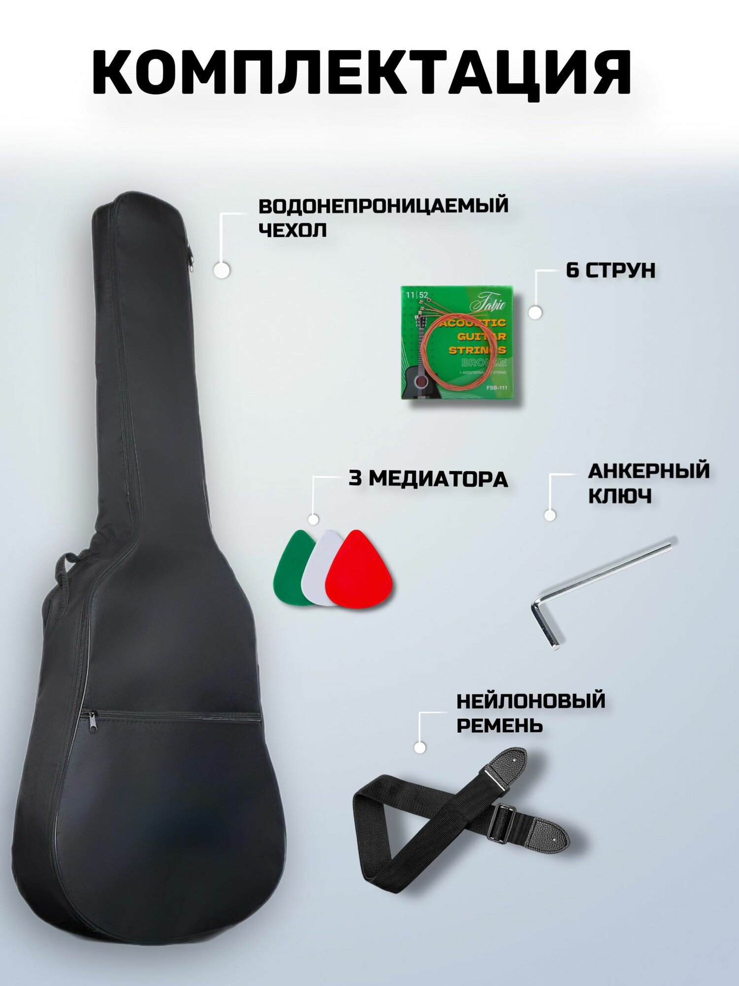 Купить Гитара акустическая 40″ Белая Матовая (Набор начинающего гитариста, Jordani JD4020 WH) с доставкой по всей России.