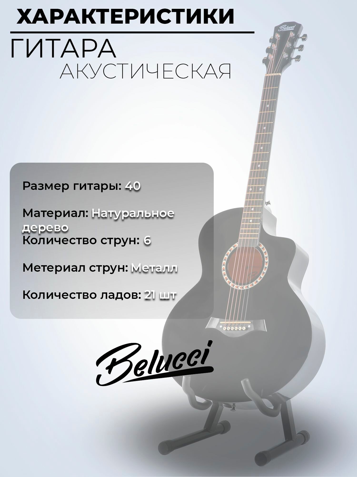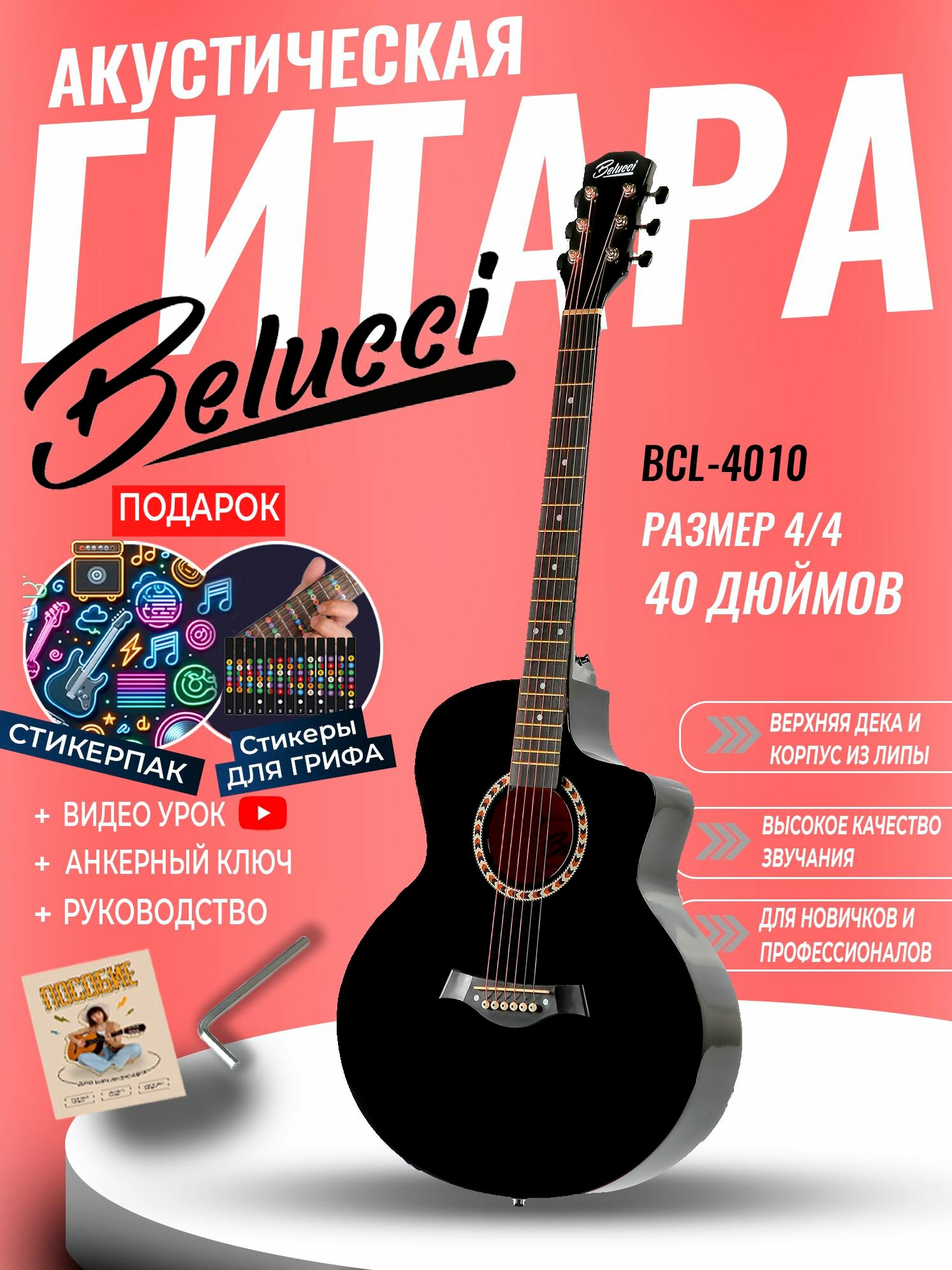 Гитара акустическая 40″ Чёрная (Инструмент начинающего музыканта, Belucci BCL4010 BK): сравнение цен, характеристики, фото, актуальное наличие и цены.