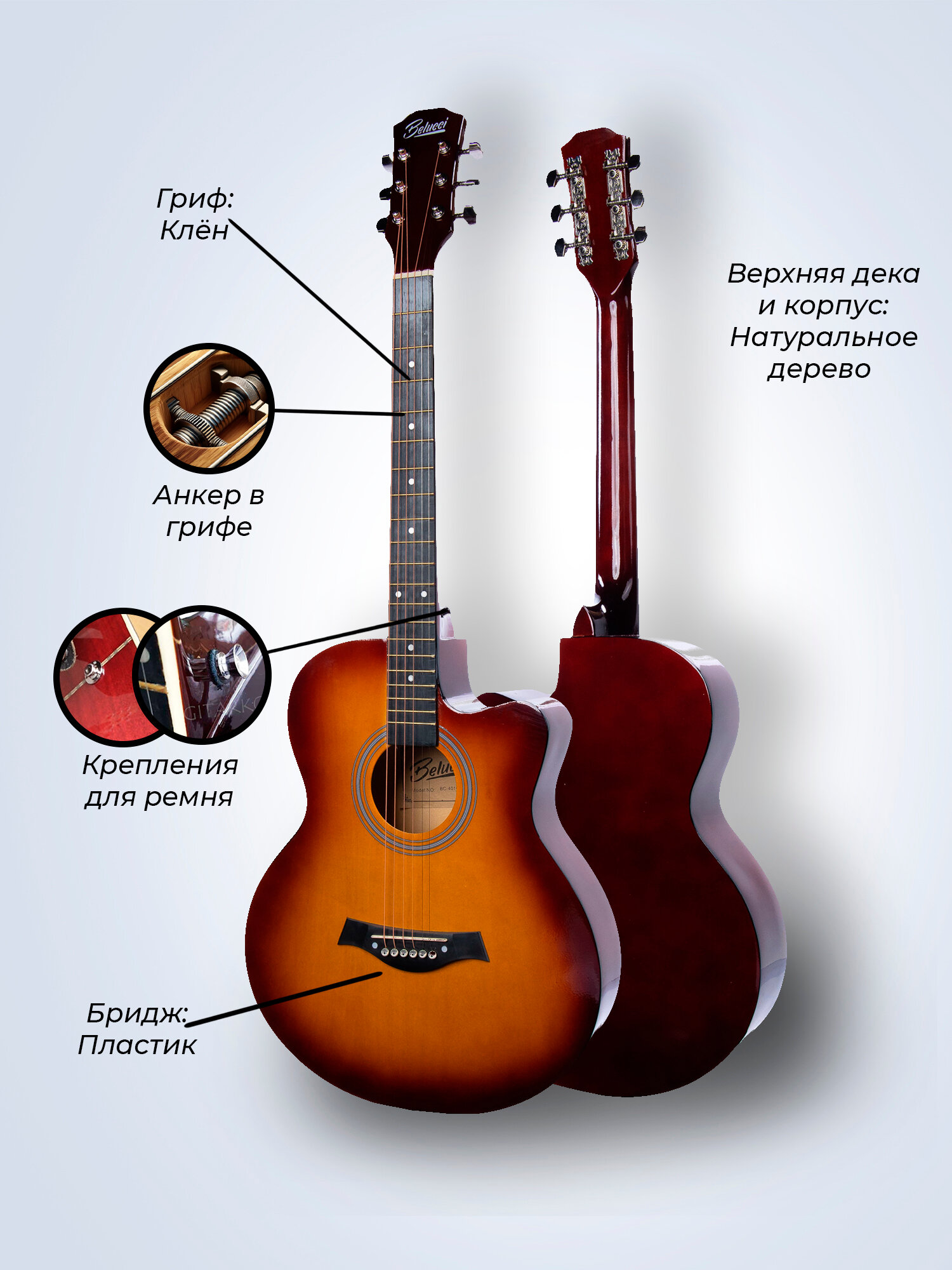 В целом, акустическая гитара Belucci BC4010 BS (SB) - это отличное сочетание цены, качества и стиля для любого, даже начинающего музыканта. Эта гитара по качеству сборки, звучанию и удобству игры сравнима с моделями Yamaha — известными своей надежностью и сбалансированным тоном. Корпус выполнен из тщательно отобранных материалов, что обеспечивает насыщенный и четкий звук, а удобная форма грифа позволяет с легкостью брать даже сложные аккорды. Отличный выбор как для начинающих, так и для опытных музыкантов, ищущих достойный инструмент по привлекательной цене