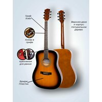 Купить Гитара акустическая 41″ Санбёрст (Инструмент начинающего музыканта, Fabio FAW-702VS) с доставкой по всей России.