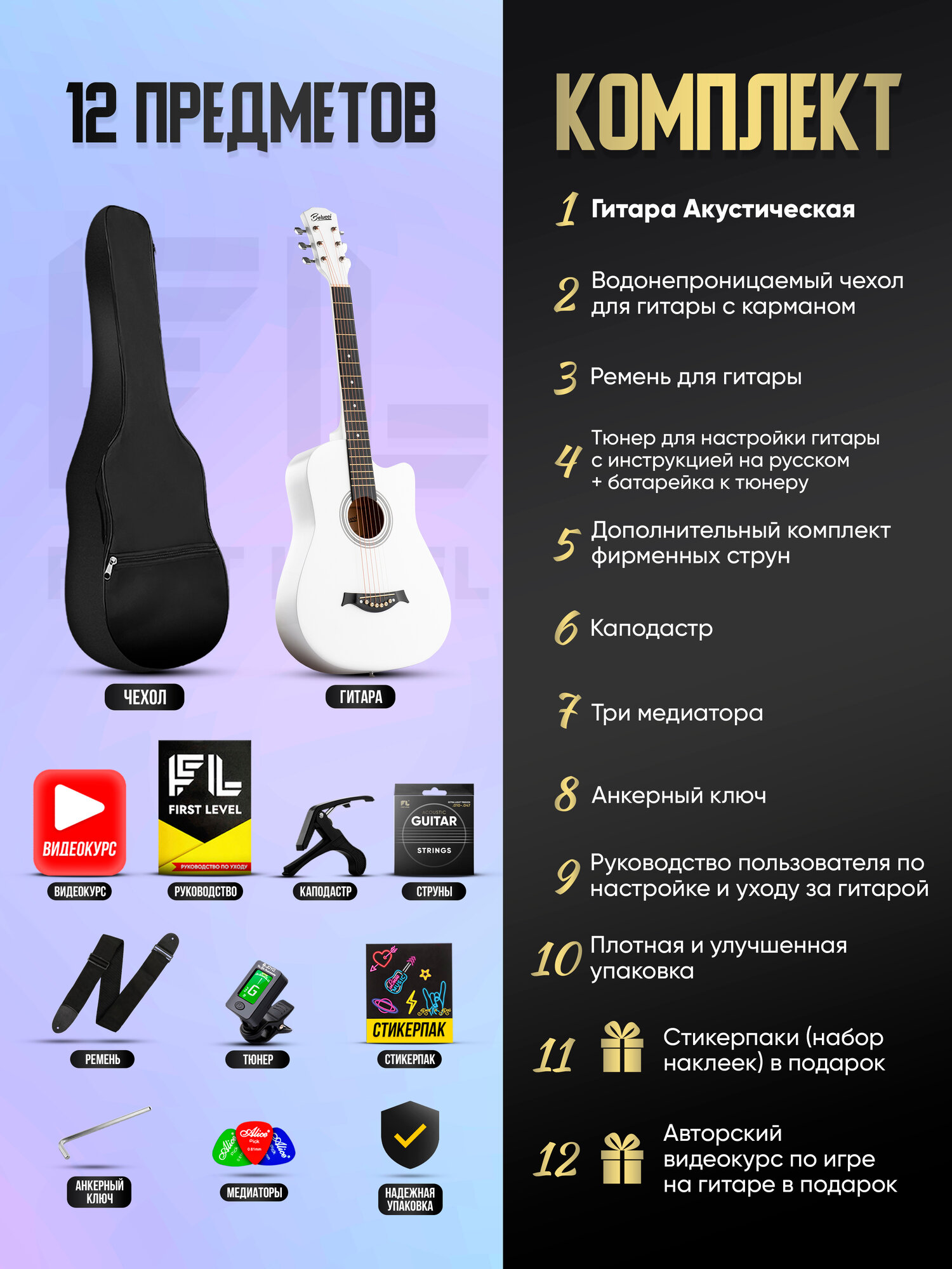 Гитара акустическая 38″ (7/8) с набором PREMIUM: сравнение цен, характеристики, фото, актуальное наличие и цены.