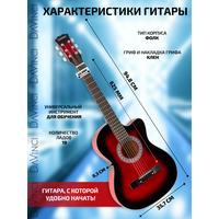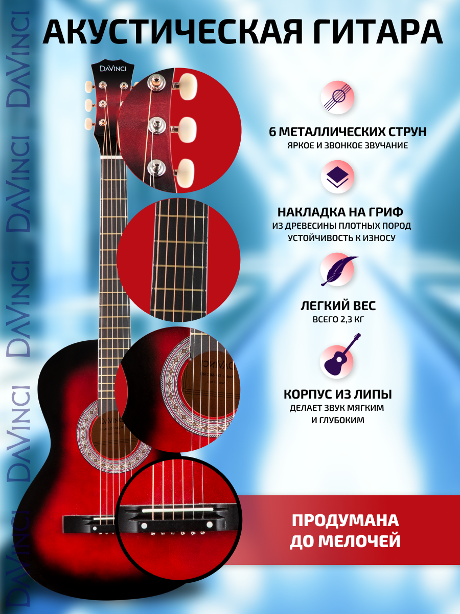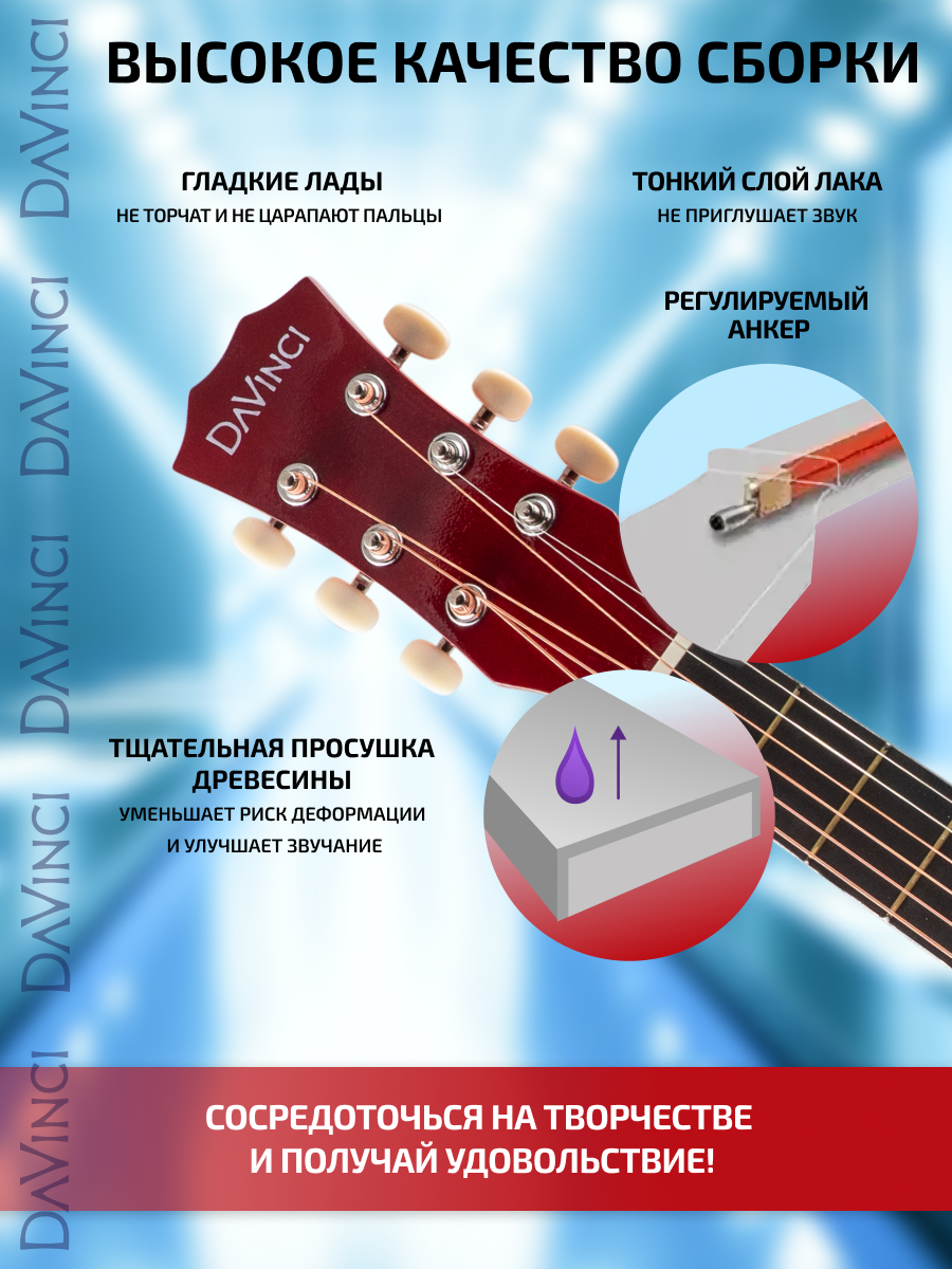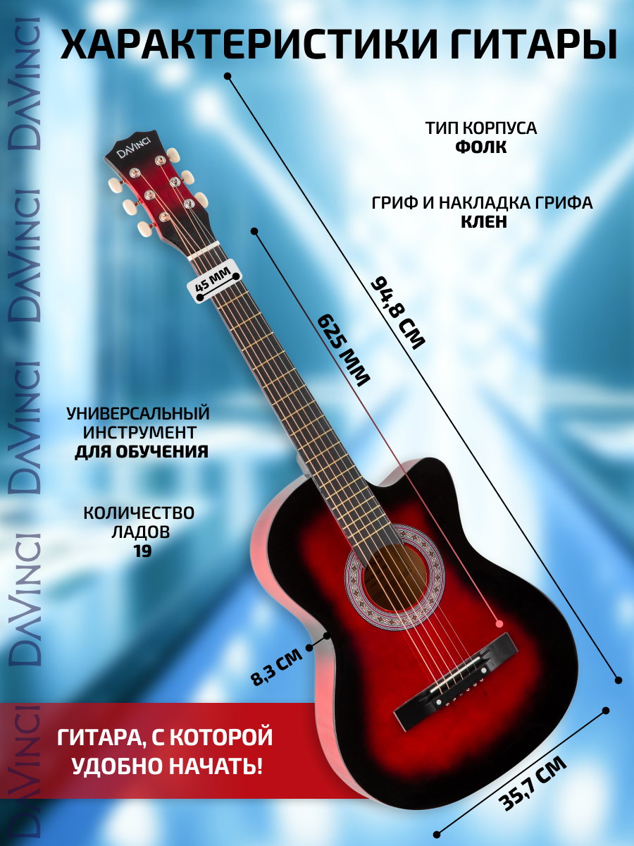 Гитара акустическая шестиструнная 7/8, DAVINCI DF-50C RD, гитара с вырезом: сравнение цен, характеристики, фото, актуальное наличие и цены.
