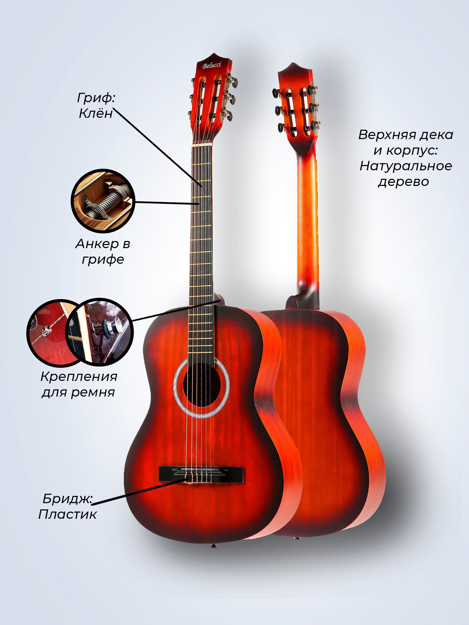 Купить Гитара классическая 38″ 7/8 Санбёрст (Инструмент начинающего музыканта, Belucci SAP3825 SB) с доставкой по всей России.