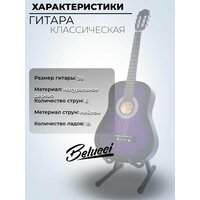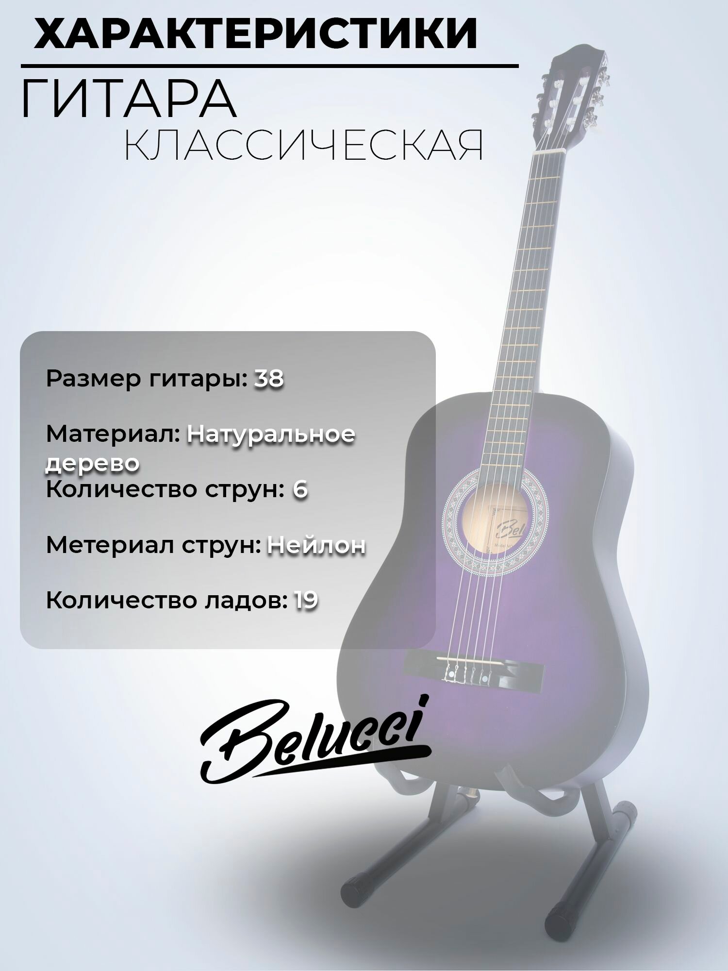 Гитара классическая 38″ 7/8 Фиолетовая (Инструмент начинающего музыканта, Belucci BC3825 VTS): сравнение цен, характеристики, фото, актуальное наличие и цены.