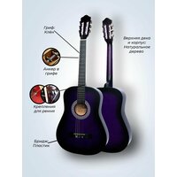 Купить Гитара классическая 38″ 7/8 Фиолетовая (Инструмент начинающего музыканта, Belucci BC3825 VTS) с доставкой по всей России.