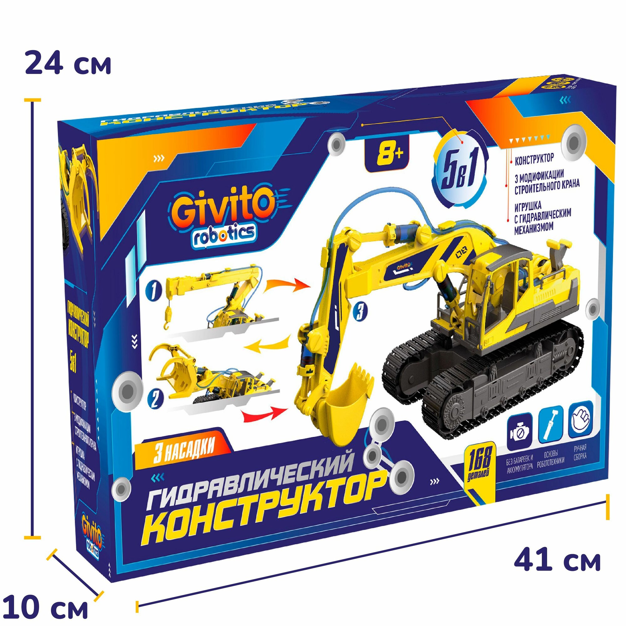 GIVITO Игрушка-конструктор 5в1 «Гидравлический конструктор», 168 деталей: экскаватор, подъемный кран, бревнозахват: сравнение цен, характеристики, фото, актуальное наличие и цены.