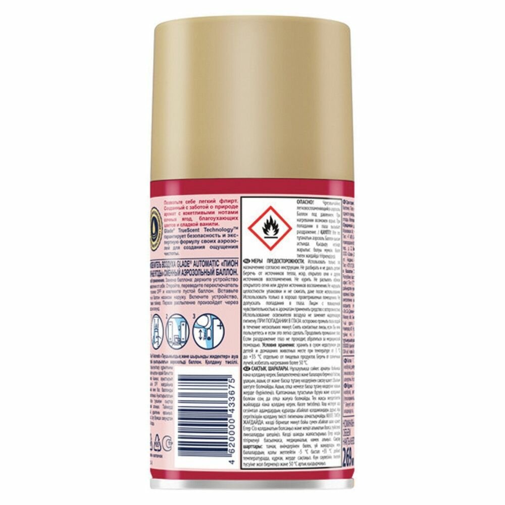 Набор из 6 шт, Сменный баллон 269 мл, GLADE «Пион и сочные ягоды» для автоматических освежителей, 864977 (701781): сравнение цен, характеристики, фото, актуальное наличие и цены.