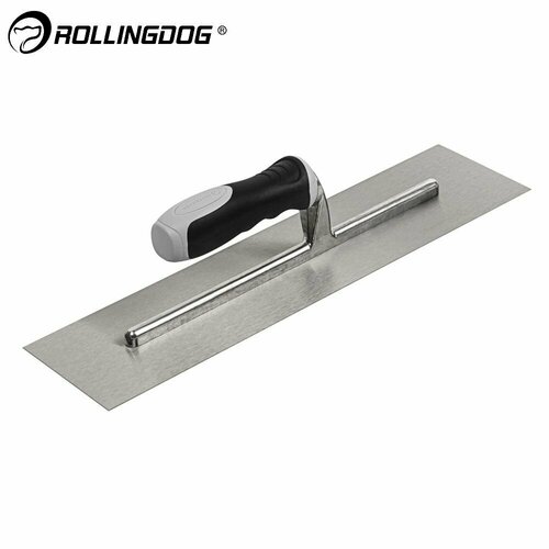 Гладилка Rollingdog 400×100мм - ручной инструмент, который можно использовать для нанесения на горизонтальные и вертикальные поверхности различных строительных смесей также применяется при работе со шпатлевкой, штукатуркой и другими смесями. Позволяет быстро и эффективно покрывать составами поверхности большой площади посредством нанесения тонких, ровных слоев, также может применятся для разглаживания наличного пола. Конструкция представляет собой плоское полотно с ручкой. Использование гладилки значительно упрощает штукатурные работы и по своим свойствам может легко заменить шпатель или гребенку. Обладает оптимальными размерами и относительно лёгким весом, что позволяет производить длительные работы без особых усилий. Двухкомпонентная рукоятка с нескользящим покрытием удобно лежит в руке обеспечивая максимальное удобство и лёгкость при эксплуатации. Гладилка изготовлена из высококачественных и прочных материалов, что придаёт ей устойчивость к механическим воздействиям и позволяет служить длительный срок в условиях интенсивной работы. Полотно изделия изготовлено из нержавеющей стали толщиной 0.8 мм, которая не подвергается коррозии.