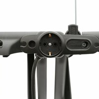 Гладильная доска оснащена встроенной розеткой для утюга, что обеспечивает удобство использования и позволяет не беспокоиться о дополнительных проводах. Подставка для утюга обеспечивает устойчивость и безопасность при глажении.