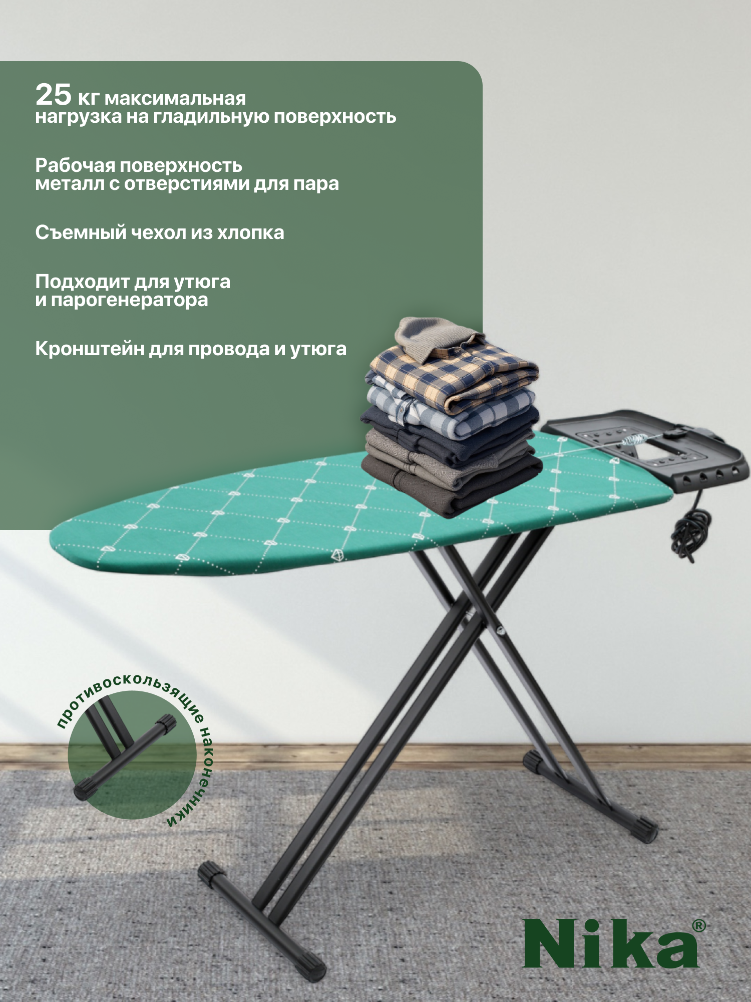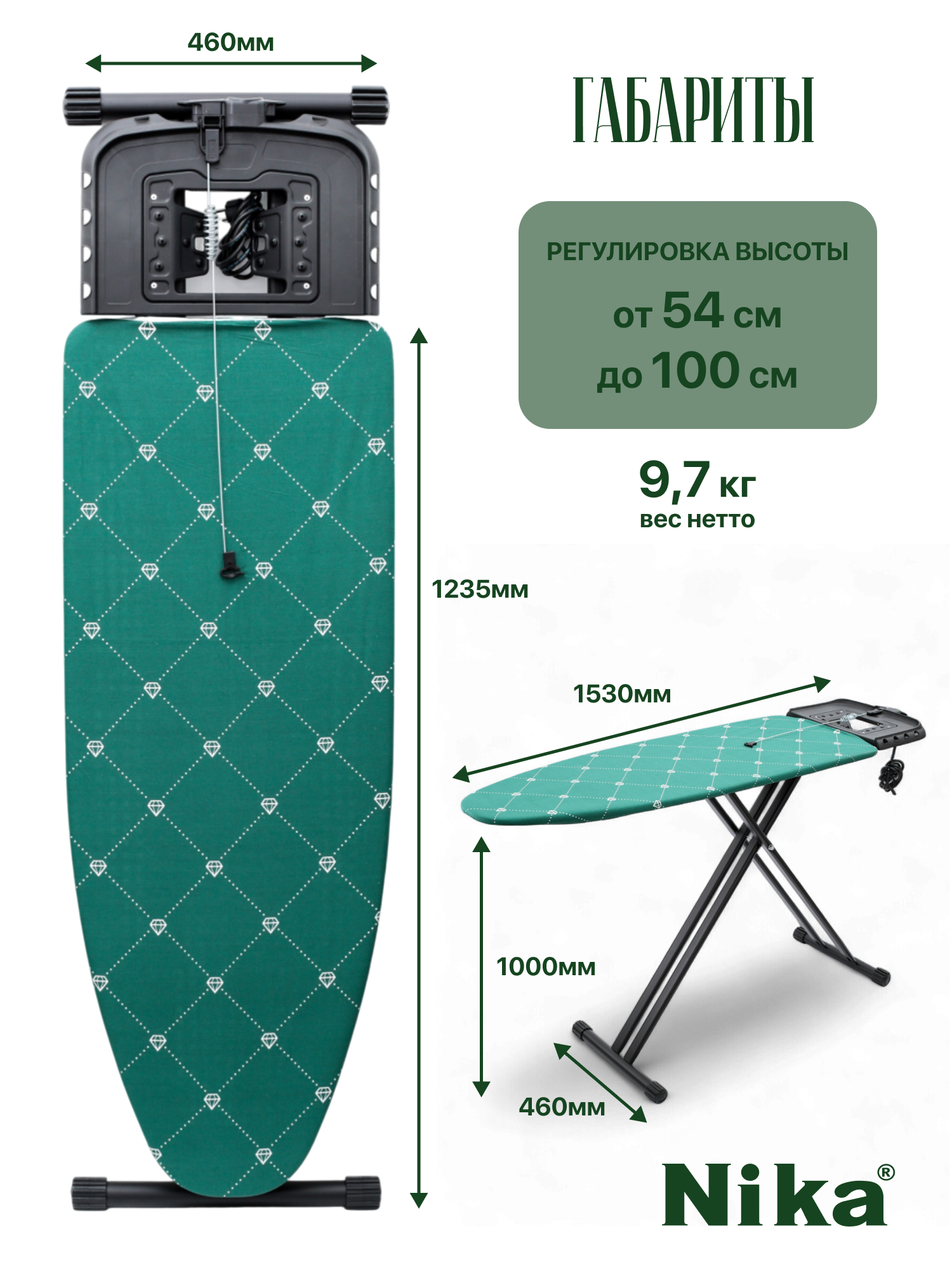 Гладильная доска «HAUSHALT LUX Brilliant emerald» с подставкой для утюга, 123х46 см: сравнение цен, характеристики, фото, актуальное наличие и цены.