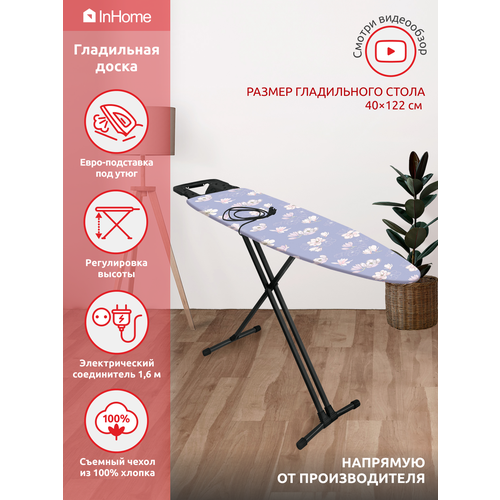 Купить Гладильная доска InHome складная с розеткой и подставкой для утюга IN10M/1, 122х40 см, с цветами с доставкой по всей России.