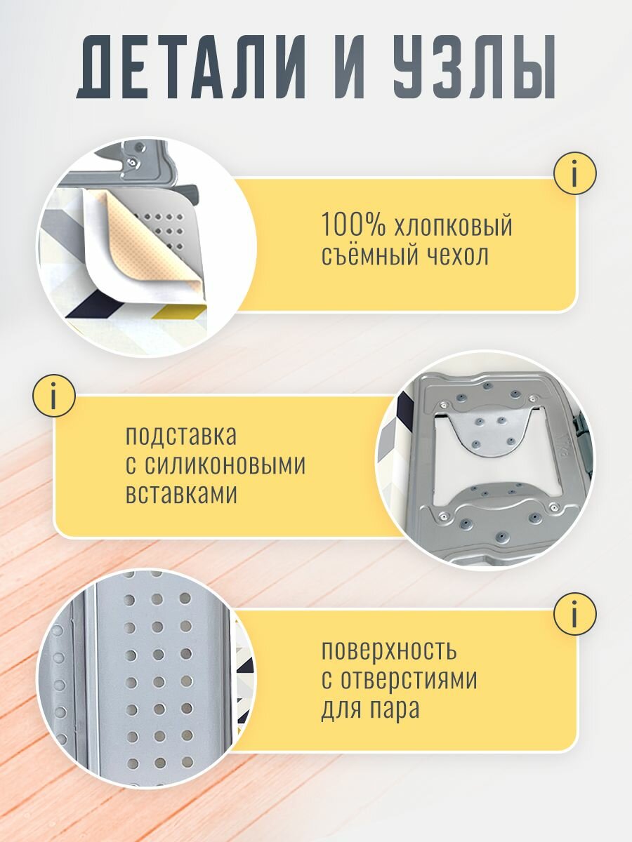 Подставка под утюг широкую поверхность, что обеспечивает устойчивость и безопасность при работе с утюгом. Съемный чехол изготовлен из поролона и хлопка с термоустойчивым покрытием, что гарантирует долгий срок службы и сохранение внешнего вида.