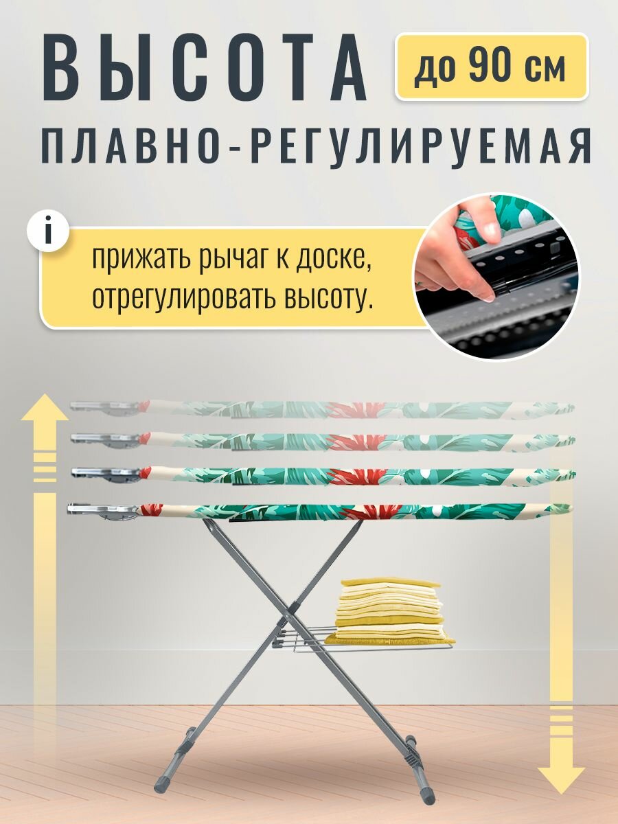Гладильная доска Ника металлическая с плавной регулировкой по высоте, с подставкой под утюг или парогенератор. Широкая подставка под утюг и парогенератор. Съемный чехол изготовлен из поролона и хлопка с термоустойчивым покрытием. Электросоединитель 1,9 м. Кронштейн для провода утюга. Розетка с держателем для провода утюга. Полка для белья. Максимальная нагрузка на гладильную поверхность 25 кг. Габаритные размеры: гладильная поверхность 122/ 40 см; В сложенном виде 151 х 40 х 8 см; Вес - 7,9 кг.