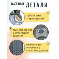 Подставка под утюг широкую поверхность, что обеспечивает устойчивость и безопасность при работе с утюгом. Съемный чехол изготовлен из поролона и хлопка с термоустойчивым покрытием, что гарантирует долгий срок службы и сохранение внешнего вида.