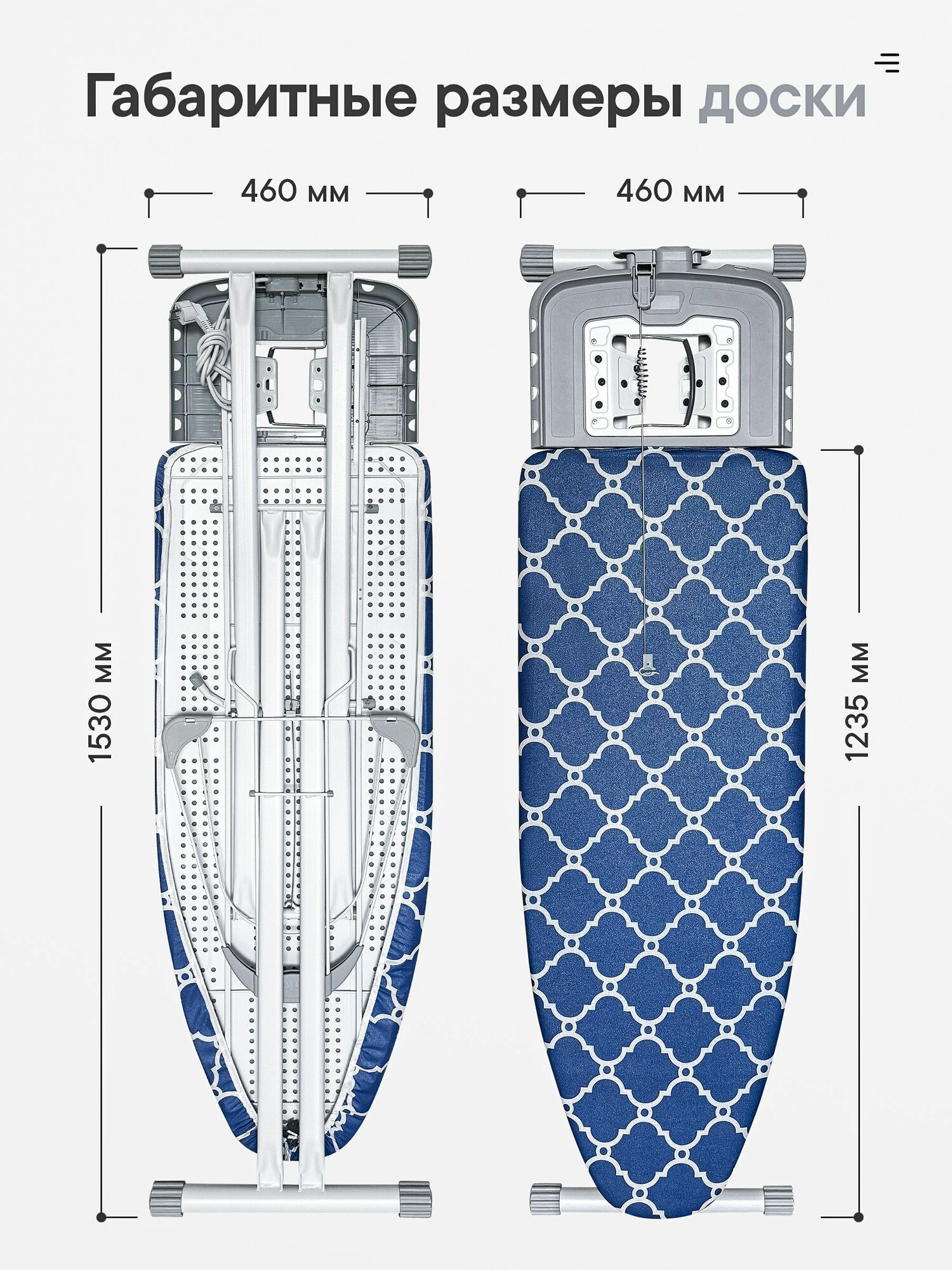 - Встроенная розетка с удлинителем 1,9 м для свободы размещения доски.