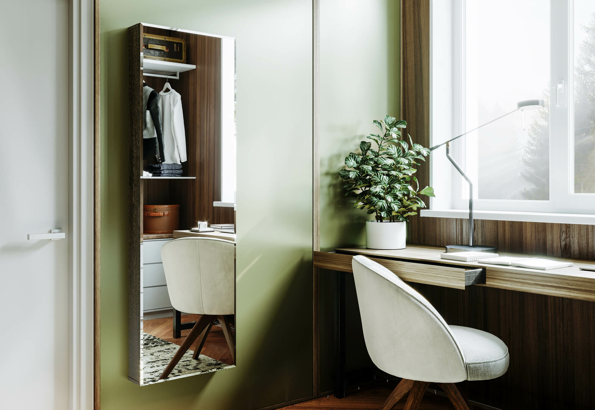 Гладильная доска настенная "Смарт" с зеркалом (502х1592х135 мм), венге