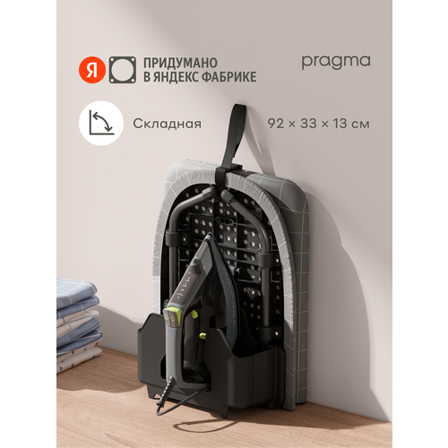 Настольная гладильная доска Pragma Sompek* помогает быстро привести одежду в порядок и не занимает много места при хранении. Размер доски — 92 × 33 × 13 см: рабочей поверхности достаточно для повседневной глажки рубашек, футболок и других вещей.