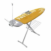 Преимущества: - Высота регулируется до 90 см; - Есть электророзетка и электроудлинитель 1,9 м с держателем для провода; - Откидной держатель для плечиков; - Удобное хранение в сложенном виде. Предназначена для удобной и качественной глажки белья. Дизайн: Барселона; Размер гладильной поверхности: 1220 x 400 мм; Размер в сложенном виде: 1530 x 410 x 60 мм; Вес: 7 кг; Материал основания: металл; Материал чехла: хлопок; Максимальная нагрузка: 25 кг; Комплектация: розетка с удлинителем 1,9 м, подставка под утюг, полка для белья, держатель для плечиков.