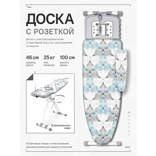 Гладильная доска Nika Валенсия, напольная, с розеткой, металл, 123×46 см: сравнение цен, характеристики, фото, актуальное наличие и цены.