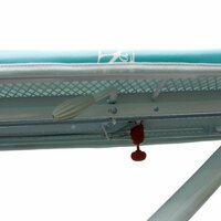 Удобный и надежный стол для глажки в домашних условиях, в отелях, магазинах одежды и в небольших ателье. Размер рабочей поверхности 120х42 см, высота может быть отрегулирована в широком диапазоне, максимально до 108 см. В сложенном виде доска имеет толщину всего 8 см. Конструкция складная, прочная, выполнена из металла, имеет защиту от случайного складывания. Ножки обеспечивают надежную устойчивость, а покрытие пола защищают резиновые накладки. Столешница из мелкой металлической сетки покрыта трехслойным съемным чехлом, верхний слой обладает антипригарным свойством. Во время работы обеспечивается хорошая воздухо- и паропроницаемость. Для удобства предусмотрена откидывающаяся жаропрочная вентилируемая подставка под утюг.