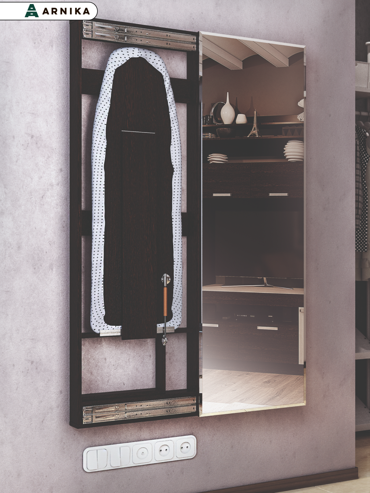 Гладильная доска ARNIKA "Смарт", с зеркалом, настенный монтаж, 112x35 см