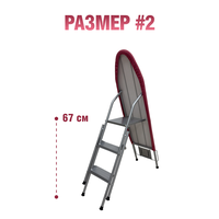 Полезный аксессуар для хозяек: гладильная доска легким движением превращается в стремянку, а в сложенном состоянии занимает мало места. Устойчивая и безопасная доска гладильная: стальной каркас обеспечивает надежность конструкции и выдерживает нагрузку до 150 кг. Материал: сталь с хромированным покрытием. Размер гладильного стола: 94,5 х 33 см. Со стальной сеткой. Максимальная регулировка высоты гладильного стола: 95 см. Диаметр ножек: 22 мм. Материал чехла: 100% хлопок. 3 широкие ступени с антискользящей поверхностью. Высота рабочей ступени: 71 см. Чехол для гладильной доски с поролоном.