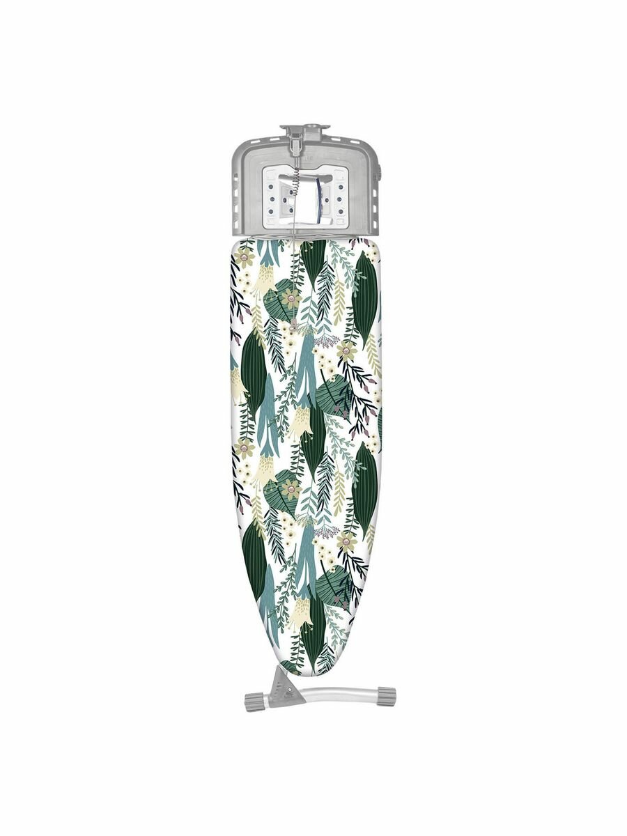 Доска оснащена металлической столешницей с перфорацией, что позволяет равномерно распределять тепло утюга и предотвращает перегрев ткани. Максимальная высота доски составляет 1 метр, что позволяет гладить даже объемные вещи.