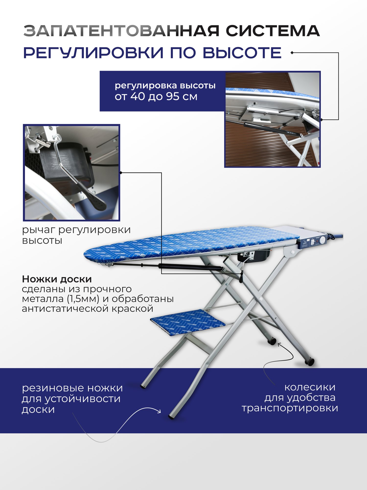 | Особенности конструкции | индикация готовности к работе, колесики, полка для белья, регулировка высоты доски, складная конструкция |