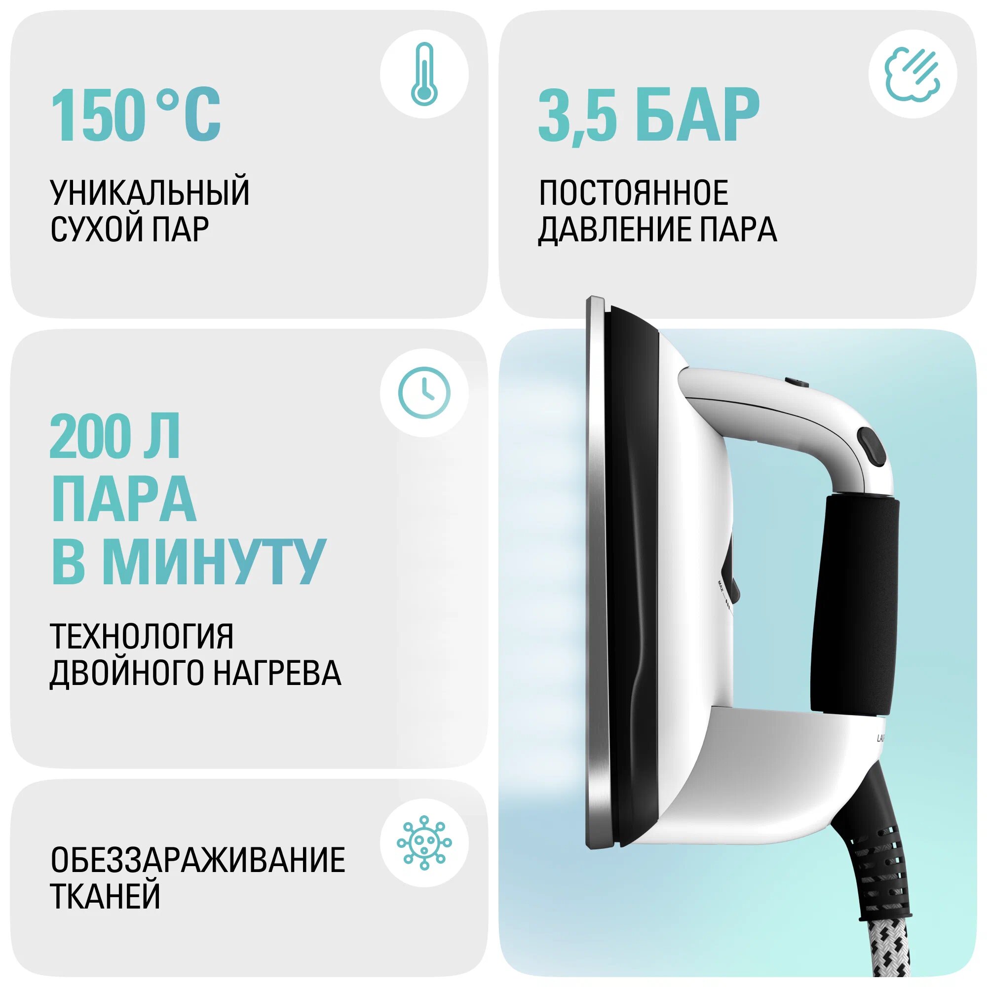 | Дополнительные функции | активная гладильная доска, паровой удар, постоянная подача пара, вертикальный пар, наддув поверхности, возможность сухой глажки, система самоочистки |