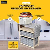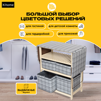 Гладильный комод K-home макси, со складными коробами, массив бука, цвет Слоновая кость, ткань Клетка