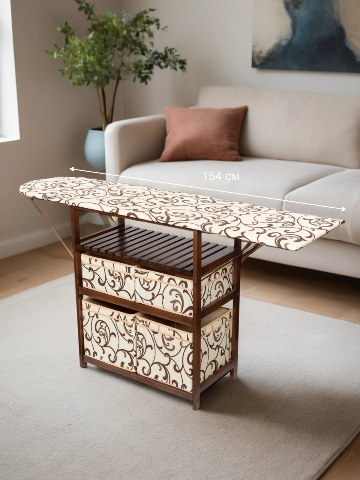 Комод деревянный гладильная доска напольная прайм Т2, в цвете орех темный, слоновая кость, венге, и белый матовый. Размер гладильной доски в разложенном виде - 154 см. Габариты комода: ДхШхВ 72х40х84 см. Обивка может отличаться, это зависит от партии поставляемой ткани. Предлагаем функциональную эксклюзивную новинку комод для вещей, невероятно удобную и практичную. Наша мебель полюбится Вами с первого применения в доме. Вместимость комода очевидна. Комод Прайм Т2 со встроенной гладильной доской имеет эстетичный стильный внешний вид. В конструкции предусмотрены удобные коробки органайзеры 4 секции, которые обязательно пригодятся во время процесса глажки белья они имеют жесткий каркас и держат форму. Тканевый бокс из нетканого материала спанбонд позволяет вещам дышать, из за постоянного доступа воздуха одежда не потеряет аромата свежести. В выдвижных ящиках удобно хранить различные предметы утюг мелкие сувениры, текстиль аксессуары. Косметику детские игрушки и бытовые мелочи. Кроме того, наличие таких емкостей позволяет значительно сэкономить пространство в комнате. Сама тумба с ящиками вполне компактна и без труда впишется даже в очень скромную по метражу комнату, квартиру или дом. Комод белый или цветной будет уместен везде в спальню, гостиную. Детскую гардеробную или прачечную. В больницу санаторий или гостевой дом. В гостиницу или коттедж. Дополнит мебель для дачи. Боковые части подвижны, при необходимости их можно поднять и соединить со стационарной центральной частью. Благодаря наличию специального складного механизма, комод можно быстро и легко трансформировать в гладильную доску. В сложенном виде конструкция выглядит, как обычный напольный шкаф и хорошо смотрится в современном интерьере. Рабочая поверхность обтянута специальной жаропрочной, термостойкой тканью. Гармоничное сочетание в мебели качественного текстиля и натуральной древесины впишется практически в любой лофт интерьер. Популярная оригинальная модель для всей семьи, вместимый удобный красивый подарок на день рождения юбилей новоселье. Любимым родителям бабушке, или порадовать себя практичной универсальной нужной вещью. Для каждой хозяйки будет незаменимым помощником. Для удобства транспортировки изделие поставляется в разобранном виде, упакованное в гофрокартон. В комплект входит вся необходимая фурнитура и удобная инструкция для сборки. Предлагаем ознакомится Вам со всем нашим ассортиментом в нашем каталоге мебели!
