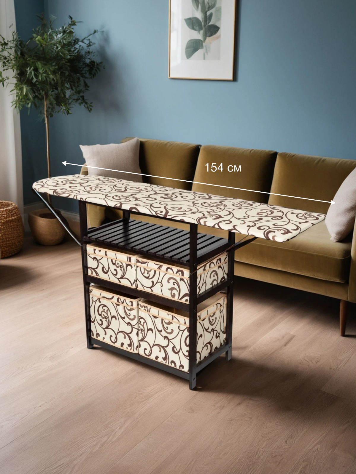 Комод деревянный гладильная доска напольная прайм Т2, в цвете орех темный, слоновая кость, венге, и белый матовый. Размер гладильной доски в разложенном виде - 154 см. Габариты комода: ДхШхВ 72х40х84 см. Обивка может отличаться, это зависит от партии поставляемой ткани. Предлагаем функциональную эксклюзивную новинку комод для вещей, невероятно удобную и практичную. Наша мебель полюбится Вами с первого применения в доме. Вместимость комода очевидна. Комод Прайм Т2 со встроенной гладильной доской имеет эстетичный стильный внешний вид. В конструкции предусмотрены удобные коробки органайзеры 4 секции, которые обязательно пригодятся во время процесса глажки белья они имеют жесткий каркас и держат форму. Тканевый бокс из нетканого материала спанбонд позволяет вещам дышать, из за постоянного доступа воздуха одежда не потеряет аромата свежести. В выдвижных ящиках удобно хранить различные предметы утюг мелкие сувениры, текстиль аксессуары. Косметику детские игрушки и бытовые мелочи. Кроме того, наличие таких емкостей позволяет значительно сэкономить пространство в комнате. Сама тумба с ящиками вполне компактна и без труда впишется даже в очень скромную по метражу комнату, квартиру или дом. Комод белый или цветной будет уместен везде в спальню, гостиную. Детскую гардеробную или прачечную. В больницу санаторий или гостевой дом. В гостиницу или коттедж. Дополнит мебель для дачи. Боковые части подвижны, при необходимости их можно поднять и соединить со стационарной центральной частью. Благодаря наличию специального складного механизма, комод можно быстро и легко трансформировать в гладильную доску. В сложенном виде конструкция выглядит, как обычный напольный шкаф и хорошо смотрится в современном интерьере. Рабочая поверхность обтянута специальной жаропрочной, термостойкой тканью. Гармоничное сочетание в мебели качественного текстиля и натуральной древесины впишется практически в любой лофт интерьер. Популярная оригинальная модель для всей семьи, вместимый удобный красивый подарок на день рождения юбилей новоселье. Любимым родителям бабушке, или порадовать себя практичной универсальной нужной вещью. Для каждой хозяйки будет незаменимым помощником. Для удобства транспортировки изделие поставляется в разобранном виде, упакованное в гофрокартон. В комплект входит вся необходимая фурнитура и удобная инструкция для сборки. Предлагаем ознакомится Вам со всем нашим ассортиментом в нашем каталоге мебели!