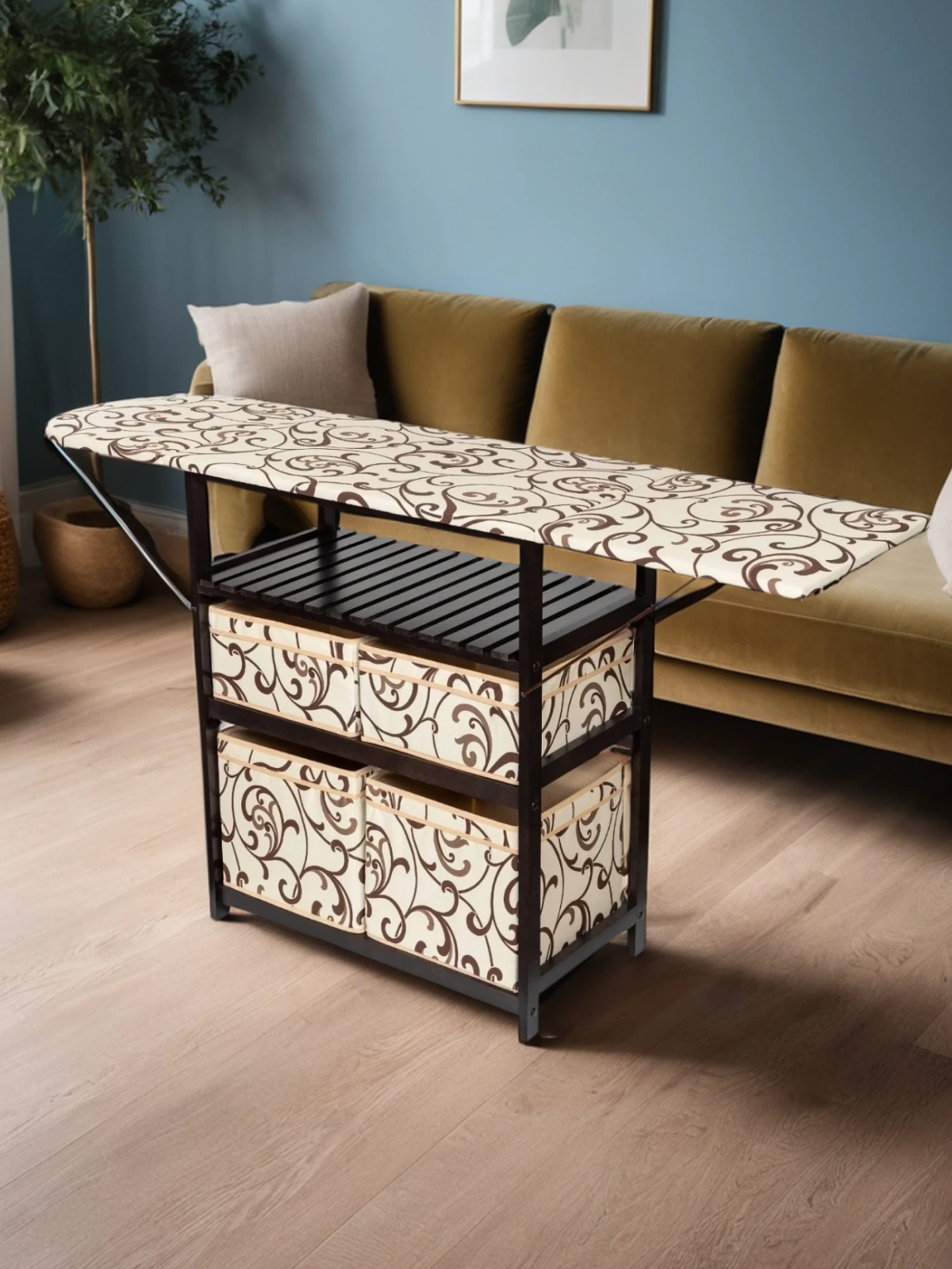 с гладильной доской, с корзиной для белья, с ножками, с полкой
