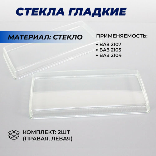 Цена указана за комплект Гладкие стекла фар ВАЗ 2107, 2105, 2104 передние на левую правую фару, стекло комплект 2шт.