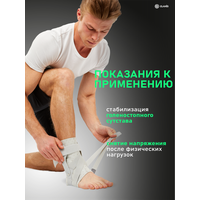 Голеностопный бандаж Ankle BraceX - это незаменимый аксессуар для тех, кто заботится о своем здоровье и хочет защитить голеностопный сустав во время физической активности в повседневной или спортивной жизни. Фиксатор голеностопа предназначен для стабилизации и надежной фиксации связочного суставного аппарата и образующих его костей. Суппорт голеностопа поддерживает и разгружает переднюю таранно-малоберцовую связку, а также уменьшает отечность в области голеностопного сустава и стопы. Это позволяет избежать травм и облегчить процесс реабилитации в случае травмы или растяжения связок. Ношение фиксатора сустава показано для здоровья мужчин, женщин и подростков во многих случаях, включая спортивные травмы/ нестабильность сустава/ косолапость/ лишний вес и другие проблемы, связанные с голеностопом, в том числе возрастные изменения сустава. Тутор на голеностоп состоит из перфорированной воздухопроницаемой "дышащей" ткани и ребер жесткости для усиления поддержки сустава. Основная часть бандажа оснащена надёжными липучками, которые позволяют регулировать степень давления на область сустава, а две эластичные фиксирующие ленты и ремешок на липучке на задней пяточной стороне позволяют регулировать положение бандажа и степень фиксации. Повязка для голени значительно облегчит болевой синдром, поможет снять отечность. Компрессионный бандаж на голеностопный сустав имеет усовершенствованный дизайн и обеспечивает максимальную защиту сустава во время интенсивных тренировок. Защиту сустава так же обеспечивают два жестких пластиковых ребра. Фиксатор голеностопа удобен и эффективен как элемент спортивной экипировки: обеспечивает максимальную защиту сустава во время занятий спортом- бег/ танцы/ футбол, волейбол/ баскетбол/ бейсбол и др. Суппорт голеностопа одинаково удобен ка для левой, так и для правой ноги. Подходит мужчинам и женщинам. Размер S может подойти и подросткам. При выборе размера нашего фиксатора голеностопного сустава необходимо измерить подъем стопы и сопоставить результат с размерной таблицей, размещенной в галерее фото. В случае отсутствия возможности произвести такой замер, можно отталкиваться от размера. В любом случае, рекомендуем производить примерку сразу при получении заказа. Рекомендации по уходу: ручная стирка в теплой воде с применением мягкого жидкого моющего средства (без содержания хлора). Бережный отжим без выкручивания. Сушить естественным путем. Бандаж голеностопный не является медицинским изделием. Перед применением рекомендуем проконсультироваться с врачом. Будем рады видеть Вас среди наших покупателей и получить от Вас обратную связь в виде отзыва!