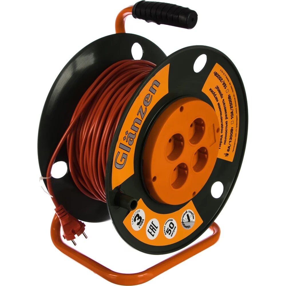 Удлинитель силовой на катушке GLANZEN 4 розетки ПВС 2х0,75 50м EB-50-001 1300Вт IP20: сравнение цен, характеристики, фото, актуальное наличие и цены.