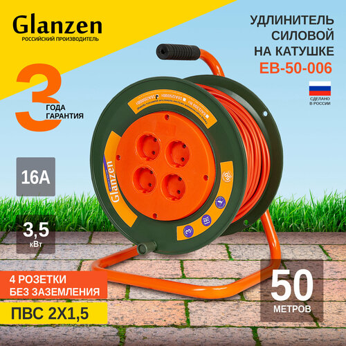 Купить Удлинитель на катушке GLANZEN EB-50-006 ПВС 2х1,5 50м с доставкой по всей России. Удлинитель на катушке GLANZEN EB-50-006 ПВС 2х1,5 50м: сравнение цен, характеристики, фото, актуальное наличие и цены.