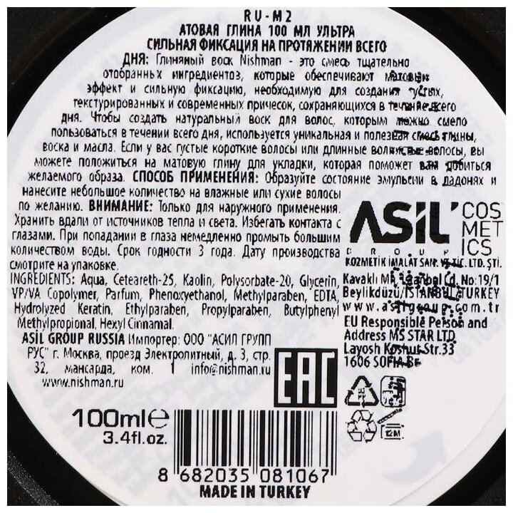 Купить Глина NISHMAN «Matte Clay», сильная фиксация, для всех типов волос, 100мл с доставкой по всей России. Глина NISHMAN «Matte Clay», сильная фиксация, для всех типов волос, 100мл: сравнение цен, характеристики, фото, актуальное наличие и цены.
