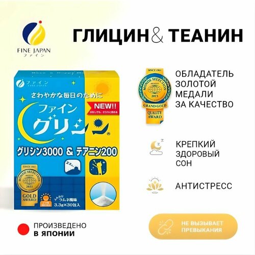 FINE Glycine 3000 & L-Theanine 200 Комплекс для активности мозга с глицином, рекомендован при симптомах чрезмерного возбуждения, при бессоннице и стрессах, способствует качественному сну и легкому пробуждению, успокаивает и снимает тревожное состояние.