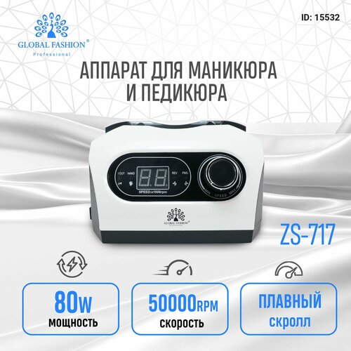 Global Fashion Аппарат, электрическая машинка для маникюра и педикюра профессиональный с ручкой ZS-717 50000 оборотов 80 Вт, белый: сравнение цен, характеристики, фото, актуальное наличие и цены.