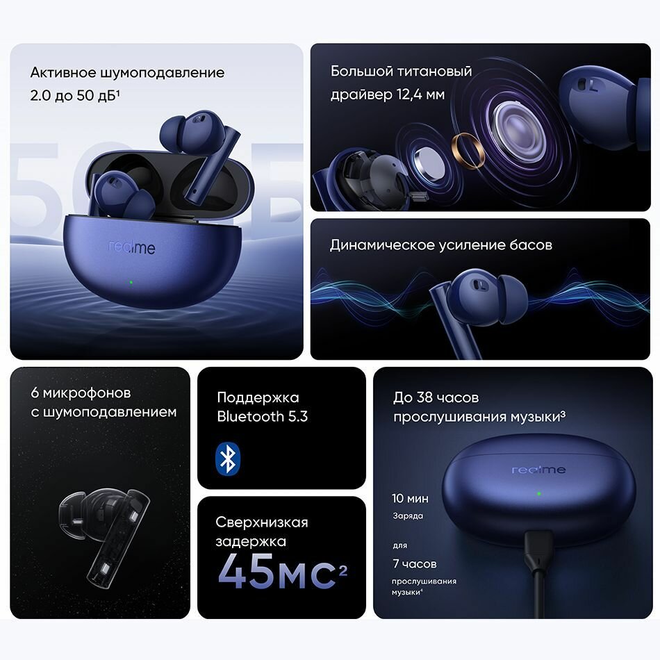 Купить Глобальная версия realme Buds Air 5 Настоящие беспроводные наушники с активным шумоподавлением 50 дБ с доставкой по всей России.