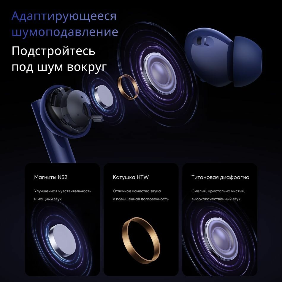 Глобальная версия realme Buds Air 5 Настоящие беспроводные наушники с активным шумоподавлением 50 дБ: сравнение цен, характеристики, фото, актуальное наличие и цены.