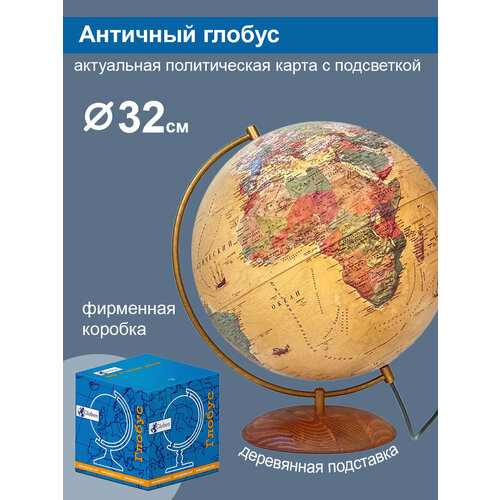 Globen Глобус Земли Антик, на подставке из натурального дерева, с LED-подсветкой, диаметр 32 см.: сравнение цен, характеристики, фото, актуальное наличие и цены.