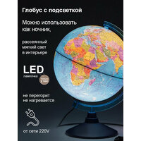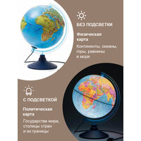 Глобус включает в себя две карты: с выключенной подсветкой вы видите физическую карту мира, при включении подсветки – политическую карту мира. Это делает глобус практичным и долговечным в использовании – пригодится школьнику для изучения окружающего мира, географии, истории и экономики. Так же глобус имеет рельефную поверхность в местах естественных возвышенностей. Эта опция подключает тактильное восприятие, и помогает детям легче запоминать особенности ландшафтного строения Земли. Диаметр глобуса 32 см – достаточно крупный, чтобы использоваться в индивидуальном порядке и для демонстрации в учебных классах. Карта глобуса максимально подробная, все надписи легко читаются. Глобус имеет подсветку от сети, что позволяет комфортно использовать его в темное время суток. Лампочку внутри сферы при необходимости легко заменить. Глобус выполнен из прочного высококачественного пластика с соблюдением всех современных технологий. Упакован в фирменную подарочную коробку. Только у нас светодиодная подсветка глобуса. Путешествуйте по миру и изучайте географию с удобной складной картой России и Мира! Наша двусторонняя карта выполнена на мелованной бумаге высокого качества и содержит все необходимые сведения о государствах и регионах. С одной стороны Вы найдете политико-административную карту России с выделенными цветами и подписанными названиями субъектов, а с другой стороны - политическую карту Мира с названиями столиц, государственными флагами и цветным рельефом суши и морского дна. Размер карты 70 х 100 см позволит Вам легко ориентироваться и планировать путешествия. С нашей картой Вы сможете узнать о новых странах, изучить географию и насладиться красивым и полезным изданием. Карта Российской Федерации складная и легкая в использовании, а географический атлас мира готов привести Вас в любую точку земного шара. Эта карта идеально подходит для путешественников и географов, которые хотят узнать больше о мире и России. Карта будет полезной не только для путешествий, но и для обучения географии и политики. В нашем ассортименте вы найдете также другие карты, такие как карта мира, физическая карта мира, карта мира настенная для детей, карта звездного неба, карта России, карта дорог России, карта РФ и детский атлас мира. Наша складная карта России и Мира - это отличное издание для любителей географии и путешествий. Карта не только красивая и познавательная, но и очень полезная. Не упустите возможность приобрести карту по выгодной цене и начать увлекательное путешествие уже сегодня! Размер карты: 70 х 100 см. Россия 1: 8 800 000 (в 1 см 88 км) Мир 1: 34 000 000 (в 1 см 340 км). В комплекте - Лупа 50мм, 5-ти кратное увеличение, с подсветкой